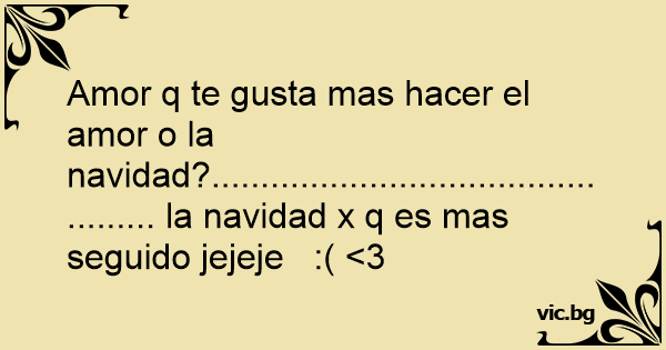 Amor q te gusta mas hacer el amor o la navidad?................................................ la navidad x q es mas seguido jejeje :( <3
