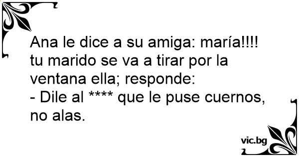 Ana le dice a su amiga: maría!!!! tu marido se va a tirar por la ventana ella; responde: