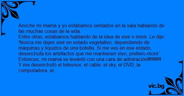 Anoche mi mamá y yo estábamos sentados en la sala hablando de las muchas cosas de la vida.