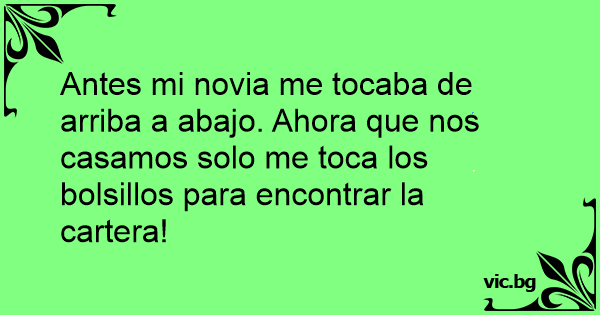 Antes mi novia me tocaba de arriba a abajo. Ahora que nos casamos solo me toca los bolsillos para encontrar la cartera!