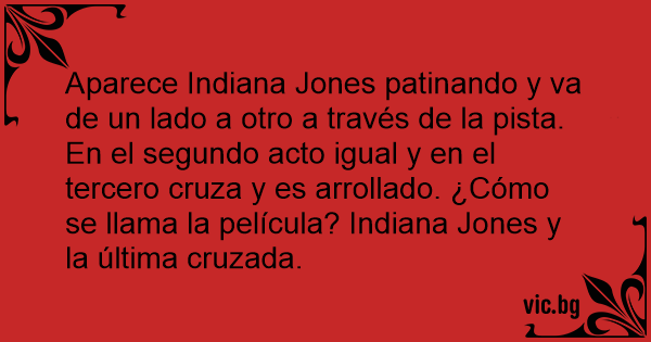 Aparece Indiana Jones patinando y va de un lado a otro a través de la pista. En el segundo acto igual y en el tercero cruza y es arrollado. ¿Cómo se llama la película? Indiana Jones y la última cruzada.