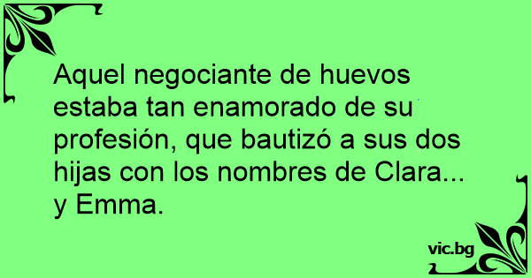 Aquel negociante de huеvоs estaba tan enamorado de su profesión, que bautizó a sus dos hijas соn los nombres de Clara... y Emma.