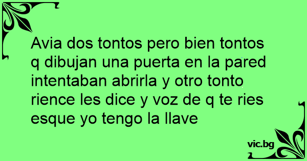 Avia dos tontos pero bien tontos q dibujan una puerta en la pared intentaban abrirla y otro тоnто rience les dice y voz de q te ries esque yo tengo la llave