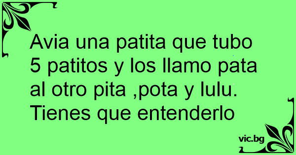 Avia una patita que tubo 5 patitos y los llamo pata al otro pita ,pota y lulu. Tienes que entenderlo