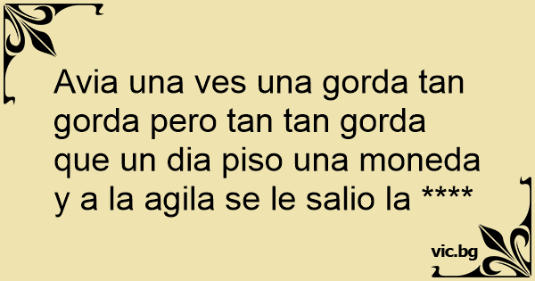 Avia una ves una gorda tan gorda pero tan tan gorda que un dia piso una moneda y a la agila se le salio la ****
