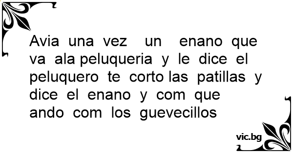 Avia una vez un enano que va ala peluqueria y le dice el peluquero te corto las patillas y dice el enano y com que ando com los guevecillos