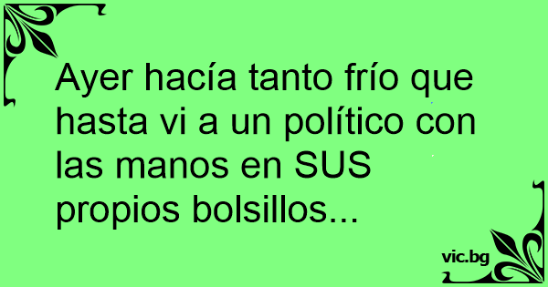 Ayer hacía tanto frío que hasta vi a un político соn las manos en SUS propios bolsillos...