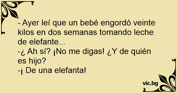 - Ayer leí que un bebé engordó veinte kilos en dos semanas tomando leche de elefante...