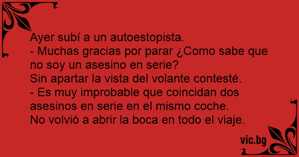 - Muchas gracias por parar ¿Como sabe que no soy un asesino en serie?