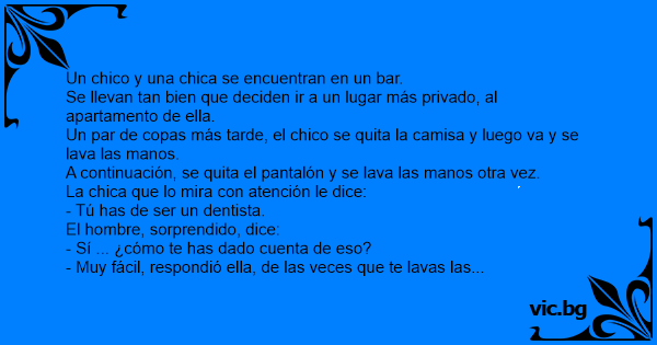 Despues de hacer el amor ella le pregunta a el: - Papi tu eres anesteciologo?- El sorprendido dice: - Si,xq lo preguntas?- - Xq yo no senti un ****- Jajaja