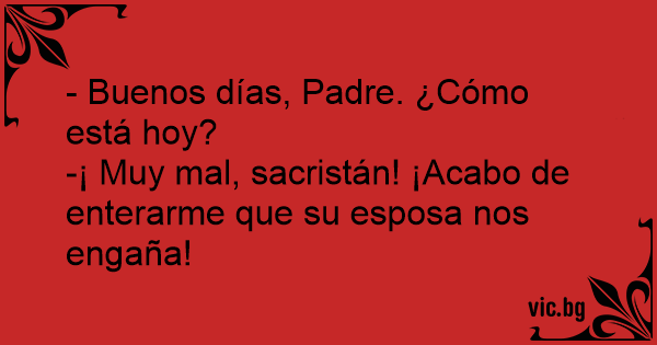 -¡ Muy mal, sacristán! ¡Acabo de enterarme que su esposa nos engaña!