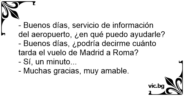 - Buenos días, ¿podría decirme cuánto tarda el vuelo de Madrid a Roma?
