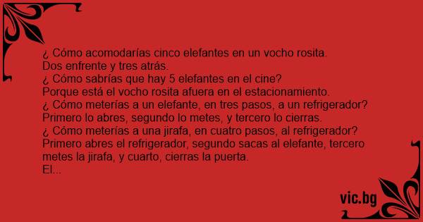 ¿ Cómo acomodarías cinco elefantes en un vocho rosita.