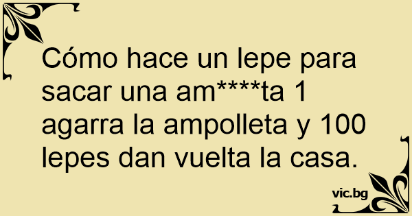 Cómo hace un lepe para sacar una am****ta 1 agarra la ampolleta y 100 lepes dan vuelta la casa.