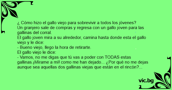 ¿ Cómo hizo el gallo viejo para sobrevivir a todos los jóvenes?