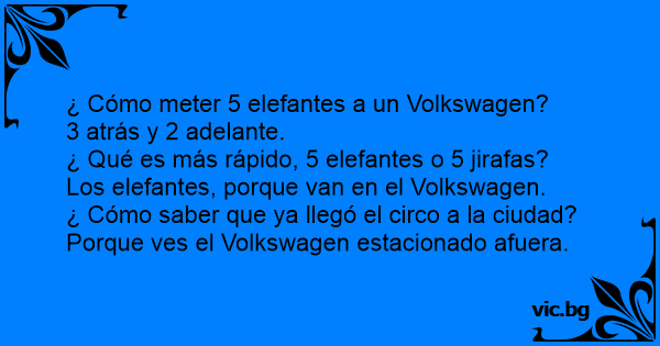 ¿ Cómo meter 5 elefantes a un Volkswagen?