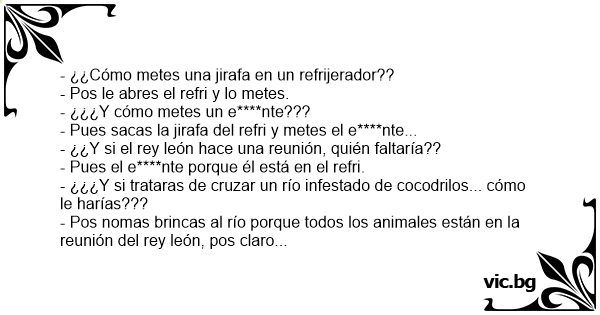 - Pues sacas la jirafa del refri y metes el e****nte...