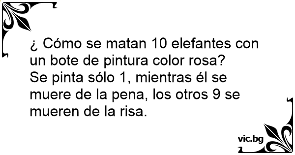¿ Cómo se matan 10 elefantes соn un bote de pintura color rosa?