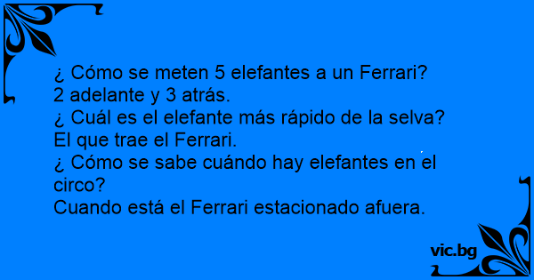 ¿ Cómo se meten 5 elefantes a un Ferrari?