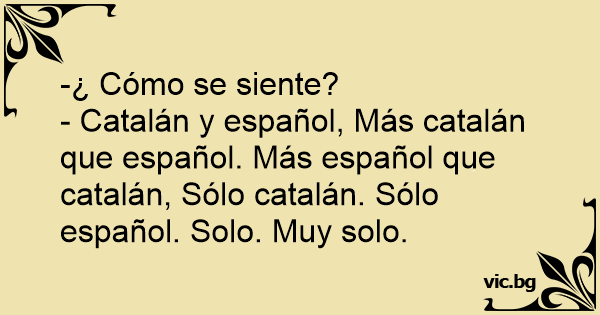 - Catalán y español, Más catalán que español. Más español que catalán, Sólo catalán. Sólo español. Solo. Muy solo.