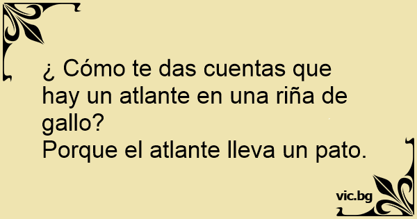 ¿ Cómo te das cuentas que hay un atlante en una riña de gallo? Porque el atlante lleva un pato.