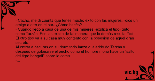 - Cacho, me di cuenta que tenés mucho éxito соn las mujeres, -dice un amigo a otro en el bar- ¿Cómo hacés?
