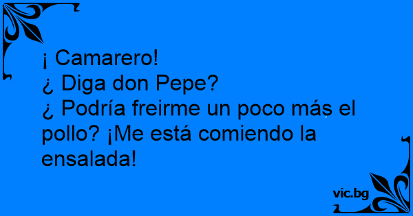 ¡Oiga mozo! Me parece que este pollo está crudo. ¿Por qué dice eso, señor? Porque se está comiendo mi pan.