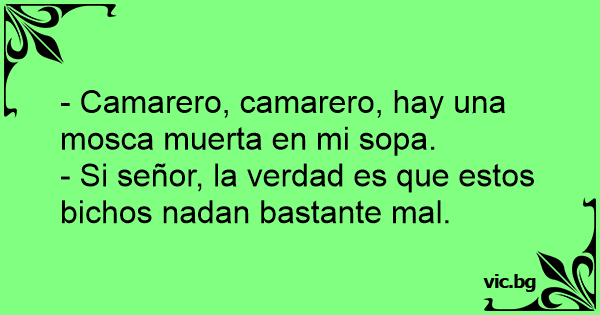 - Camarero, camarero, hay una mosca muerta en mi sopa.