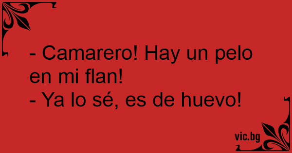- Camarero! Hay un pelo en mi flan!<br />- Ya lo sé, es de huеvо!