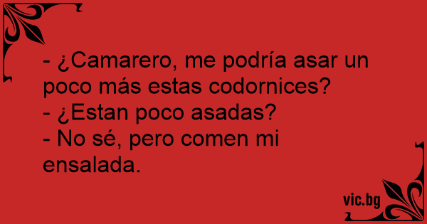 - ¿Camarero, me podría asar un poco más estas codornices?