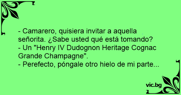 - Camarero, quisiera invitar a aquella señorita. ¿Sabe usted qué está tomando?