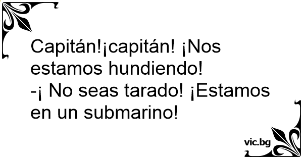 - Капитанеееее, потъваме! -Capitán capitán. ¡Nos hundimos! -Ya lo sé marinero. -¿Y no va a hacer nada? -Estamos en un submarino gilipollas.