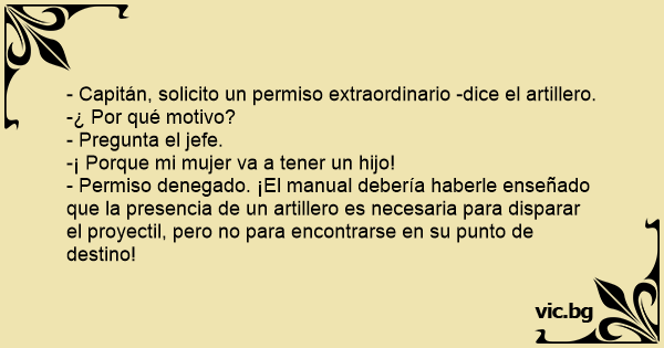 - Capitán, solicito un permiso extraordinario -dice el artillero.