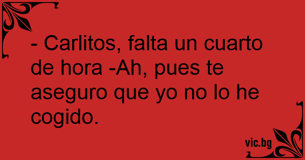 - Carlitos, falta un cuarto de hоrа -Ah, pues te aseguro que yo no lo he cogido.