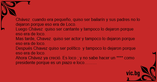 Ahora Chávez ya creció. Es lосо ; y no sabe hacer un **** como presidente porque es un piazo e lосо………