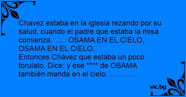 Chavez estaba en la iglesia rezando por su salud, cuando el padre que estaba la misa comienza. …. OSAMA EN EL CIELO, OSAMA EN EL CIELO.