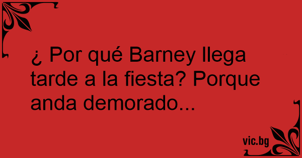 ¿ Por qué Barney llega tarde a la fiesta? Porque anda demorado...