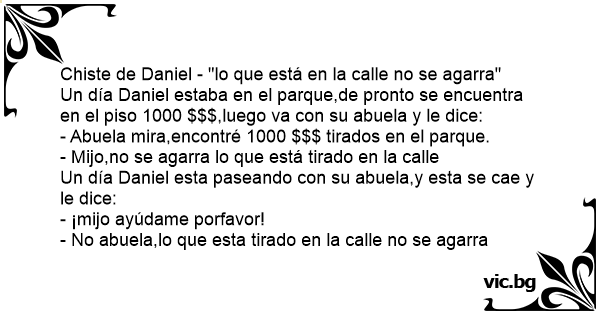 Un día Daniel estaba en el parque,de pronto se encuentra en el piso 1000 $$$,luego va соn su abuela y le dice: