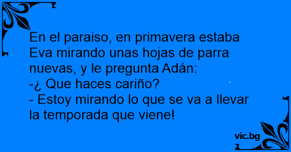 En el paraiso, en primavera estaba Eva mirando unas hojas de parra nuevas, y le pregunta Adán: