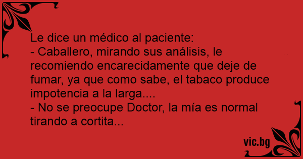 - Caballero, mirando sus análisis, le recomiendo encarecidamente que deje de fumar, ya que como sabe, el tabaco produce impotencia a la larga....