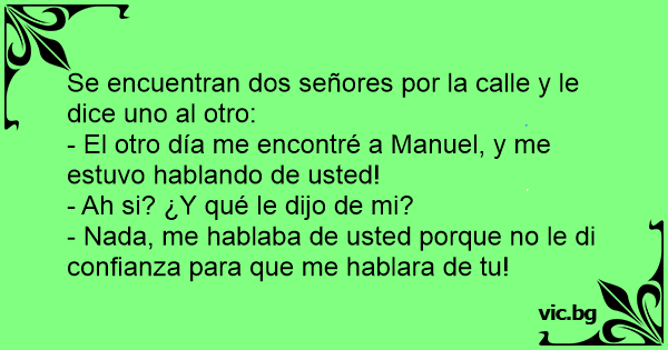 - El otro día me encontré a Manuel, y me estuvo hablando de usted!
