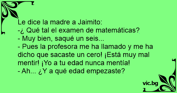- Pues la profesora me ha llamado y me ha dicho que sacaste un cero! ¡Está muy mal mentir! ¡Yo a tu edad nunca mentía!