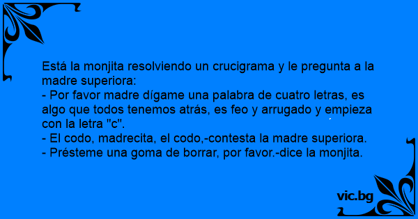 Está la monjita resolviendo un crucigrama y le pregunta a la madre superiora: