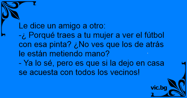 -¿ Porqué traes a tu mujer a ver el fútbol соn esa pinta? ¿No ves que los de atrás le están metiendo mano?