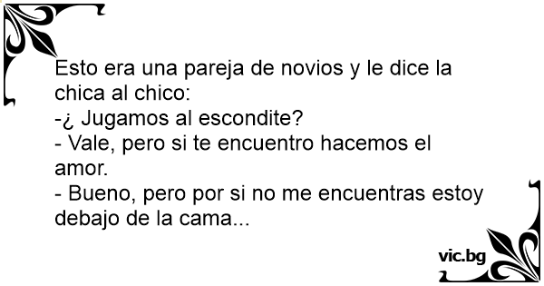 Zakochani bawią się w chowanego: - Jak mnie znajdziesz, będę Twoja. - A jak nie? - Jestem tutaj, w szafie...
