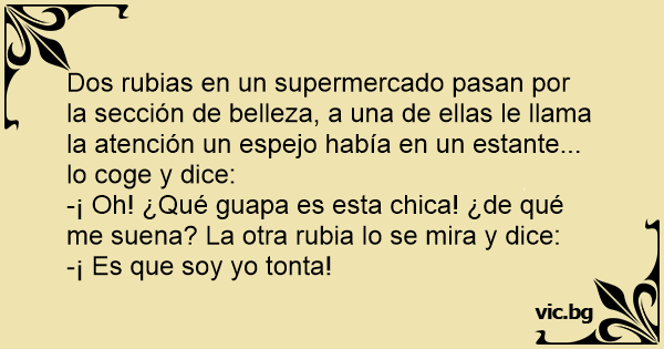 Dos rubias en un supermercado pasan por la sección de belleza, a una de ellas le llama la atención un espejo había en un estante... lo coge y dice: