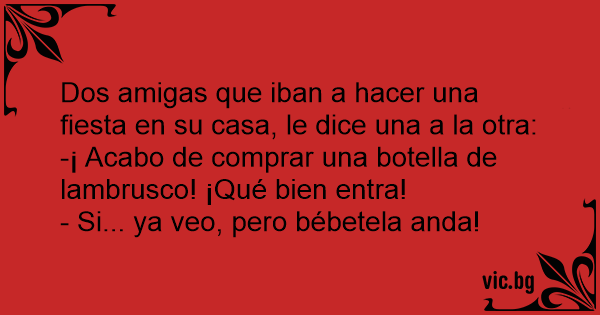 -¡ Acabo de comprar una botella de lambrusco! ¡Qué bien entra!