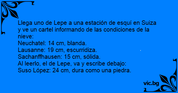 Llega uno de Lepe a una estación de esquí en Suiza y ve un cartel informando de las condiciones de la nieve: