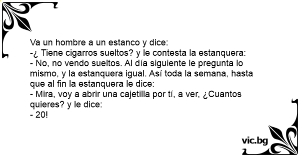 - No, no vendo sueltos. Al día siguiente le pregunta lo mismo, y la estanquera igual. Así toda la semana, hasta que al fin la estanquera le dice: