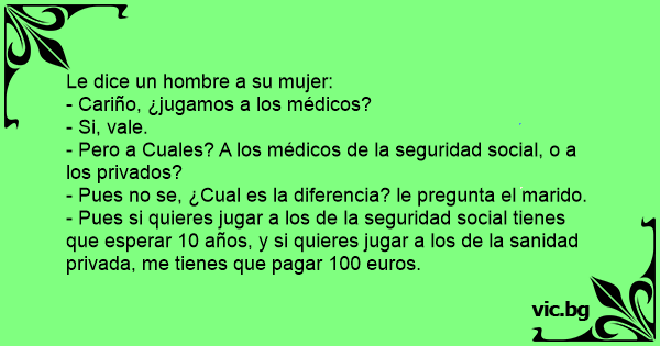 - Pues si quieres jugar a los de la seguridad social tienes que esperar 10 años, y si quieres jugar a los de la sanidad privada, me tienes que pagar 100 euros.